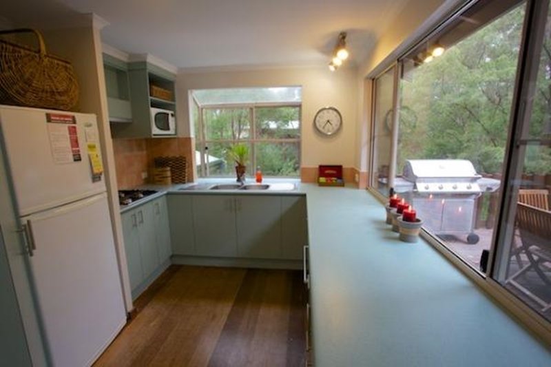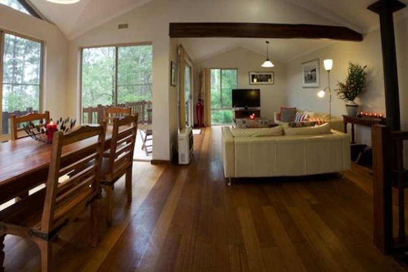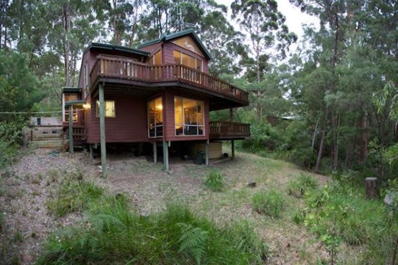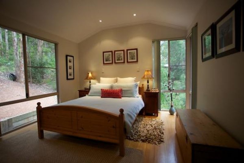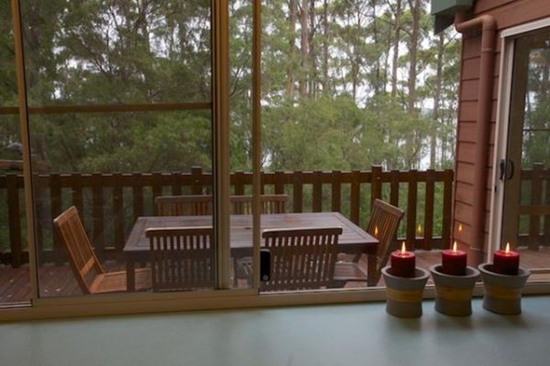 Honeymoon View is an award winning 3 level pole house overlooking Wilson Inlet and Honeymoon Island. Every room has wonderful views and the large deck is in the Karri canopy overlooking the inlet. The house can accommodate five people with two large bedrooms with a queen bed in each and one single bedroom with king single bed. There is a fold out couch in the downstairs lounge area for an additional guest. There are two bathrooms, two beautiful sitting areas with stunning views of the forest and inlet. The kitchen is light and airy and fully equipped. The deck is 7 metres above ground at canopy level and gives wonderful views of the inlet, forest and birds